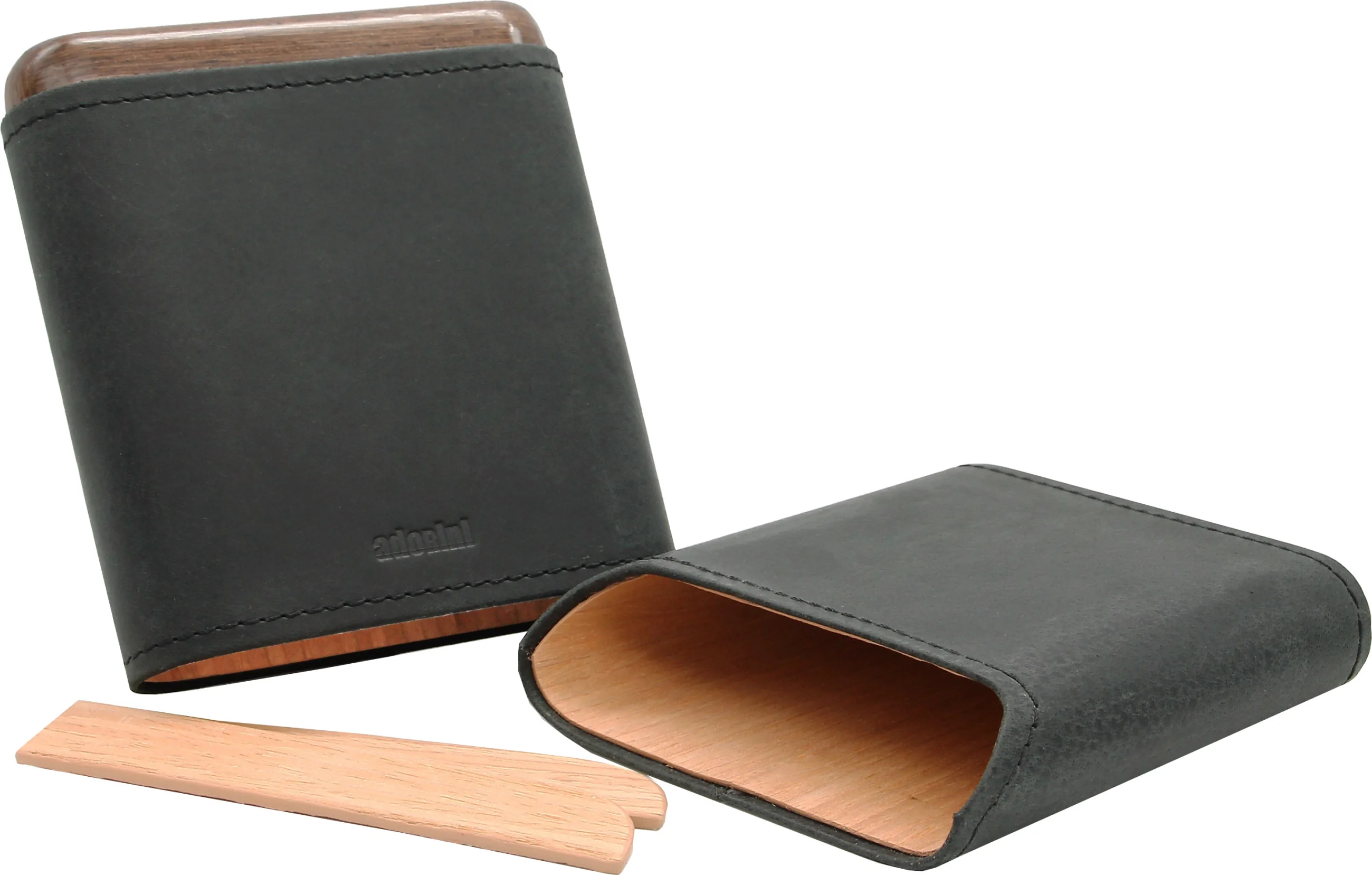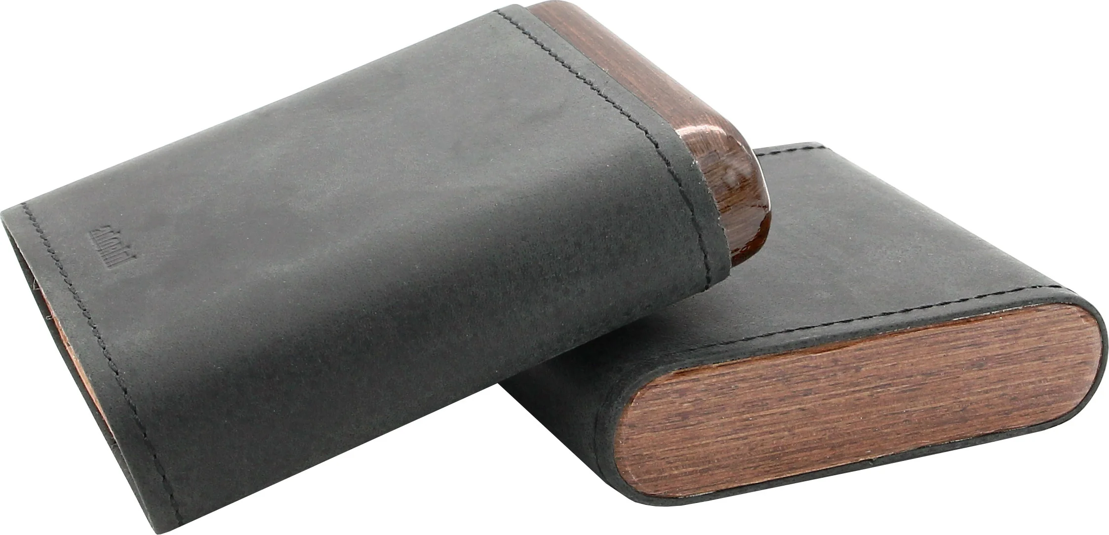 adorini γνήσια δερμάτινη θήκη πούρων με ξύλινη βάση και κορυφή, χωρητικότητα 3-5 πούρα