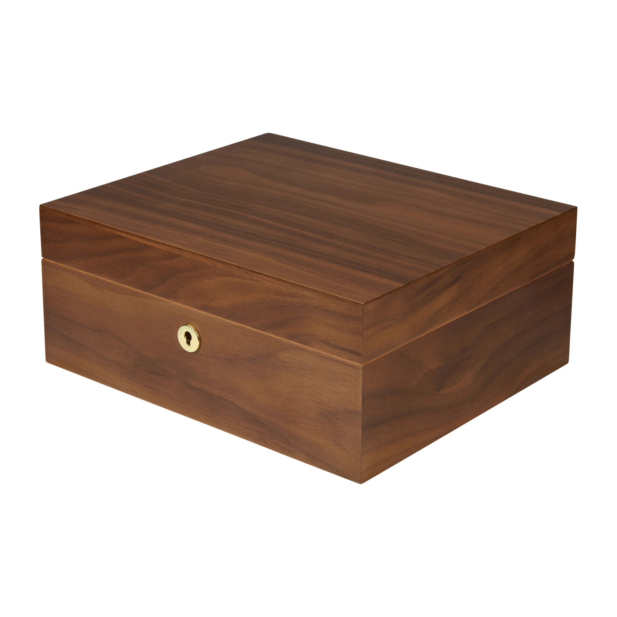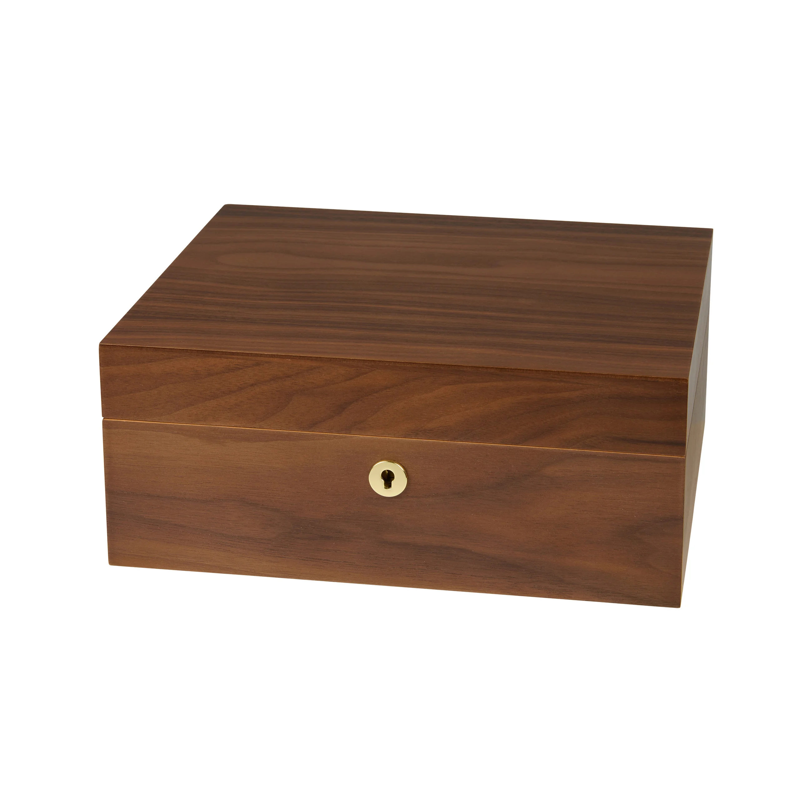 The walnut wood is distinguished by its characteristic grain with warm to dark brown tones. Thanks to its warm and natural appearance, the humidor blends harmoniously into almost any setting. Medium-sized humidors hold up to 75 cigars, providing ample space for your cigar collection.