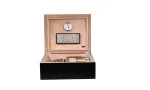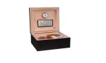 adorini Basic M Υγραντήρας Πούρων Μαύρος Ο μοντέρνος και λειτουργικός υγραντήρας πούρων της μάρκας adorini από τη σειρά Basic σε μέγεθος M εντυπωσιάζει με τη ματ μαύρη εμφάνιση και την ευελιξία του. Με χώρο για περίπου 75 πούρα ή μικρότερα κουτιά πούρων, προσφέρει μια ιδανική λύση για την ασφαλή φύλαξη των πούρων σας. Στο πλαίσιο της παράδοσης περιλαμβάνονται ένα αναλογικό υγρόμετρο και ένα παθητικό σύστημα ύγρανσης με σφουγγάρι. Το υγρόμετρο μετρά την υγρασία με βάση μια μεταλλική σπείρα και προσαρμόζεται μαγνητικά και ευέλικτα στο καπάκι του υγραντήρα πούρων μαζί με το σύστημα ύγρανσης. Ο υγραντήρας διαθέτει ματ ασημένιους μεντεσέδες στο εσωτερικό του και ένα ιδιαίτερα ισχυρό χείλος στεγανοποίησης, το οποίο εξασφαλίζει τη βέλτιστη διατήρηση της υγρασίας στο εσωτερικό. Ένα κατακόρυφο διαχωριστικό επιτρέπει τον πρόσθετο διαχωρισμό του εσωτερικού.
