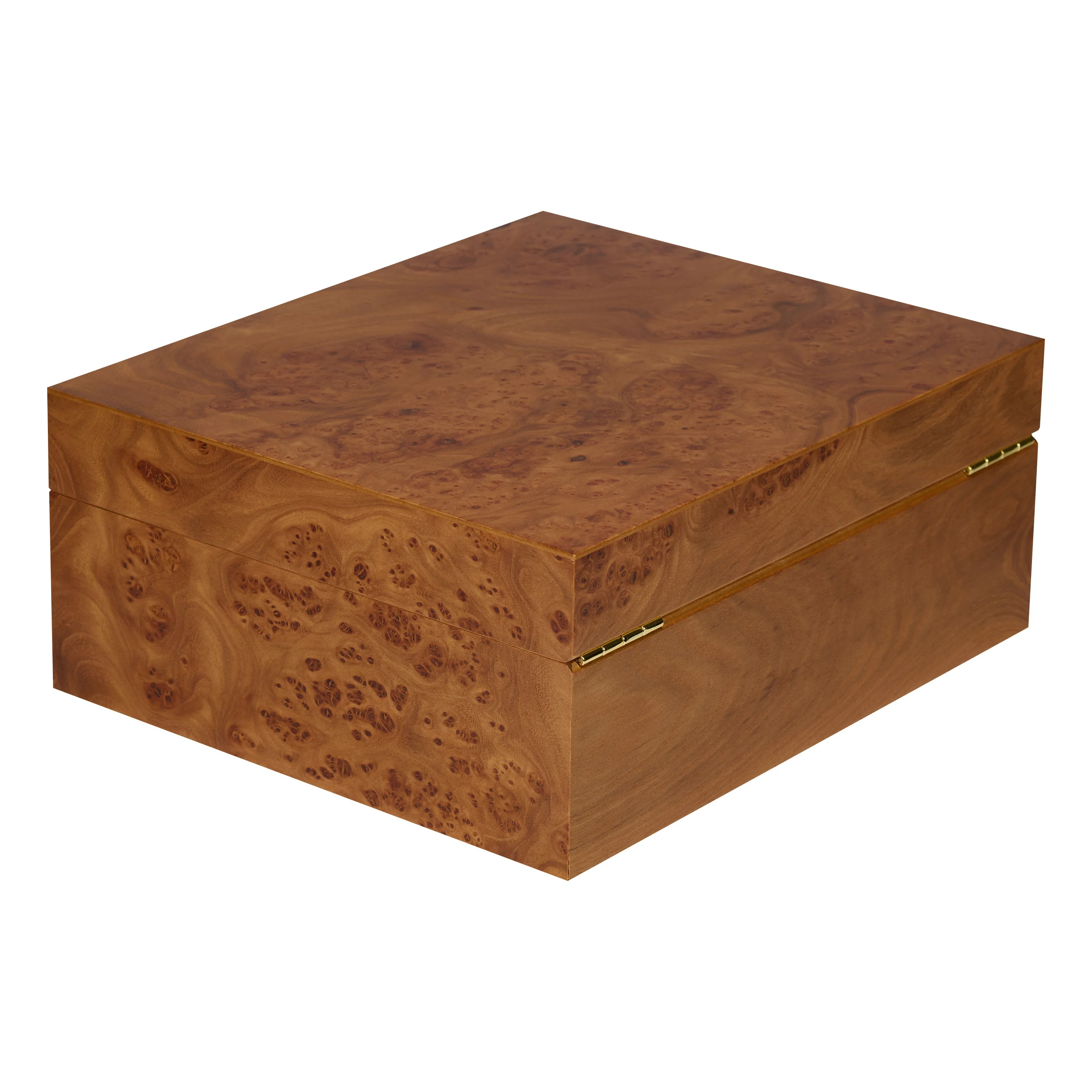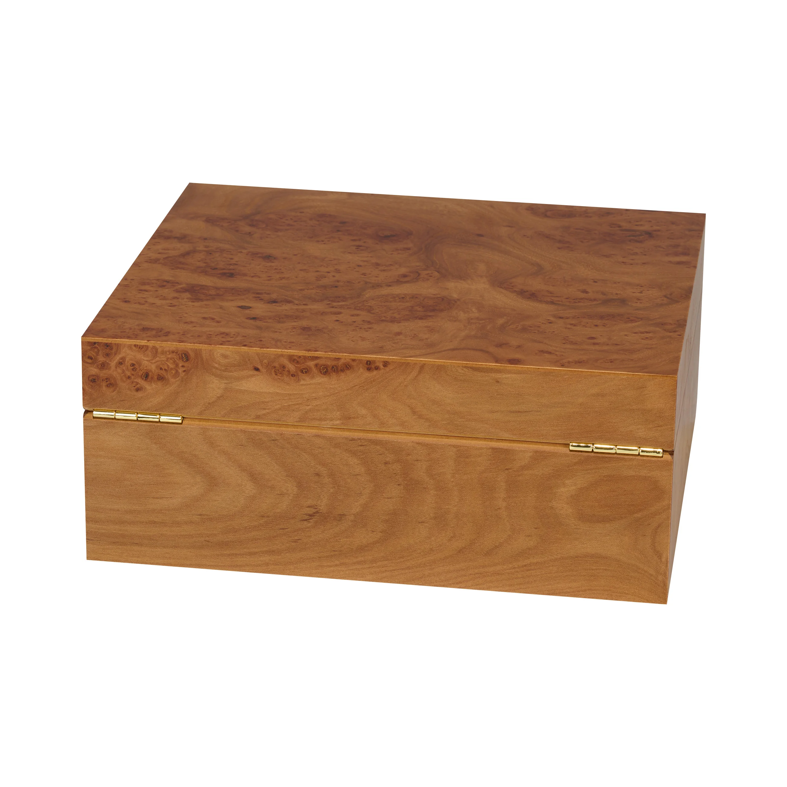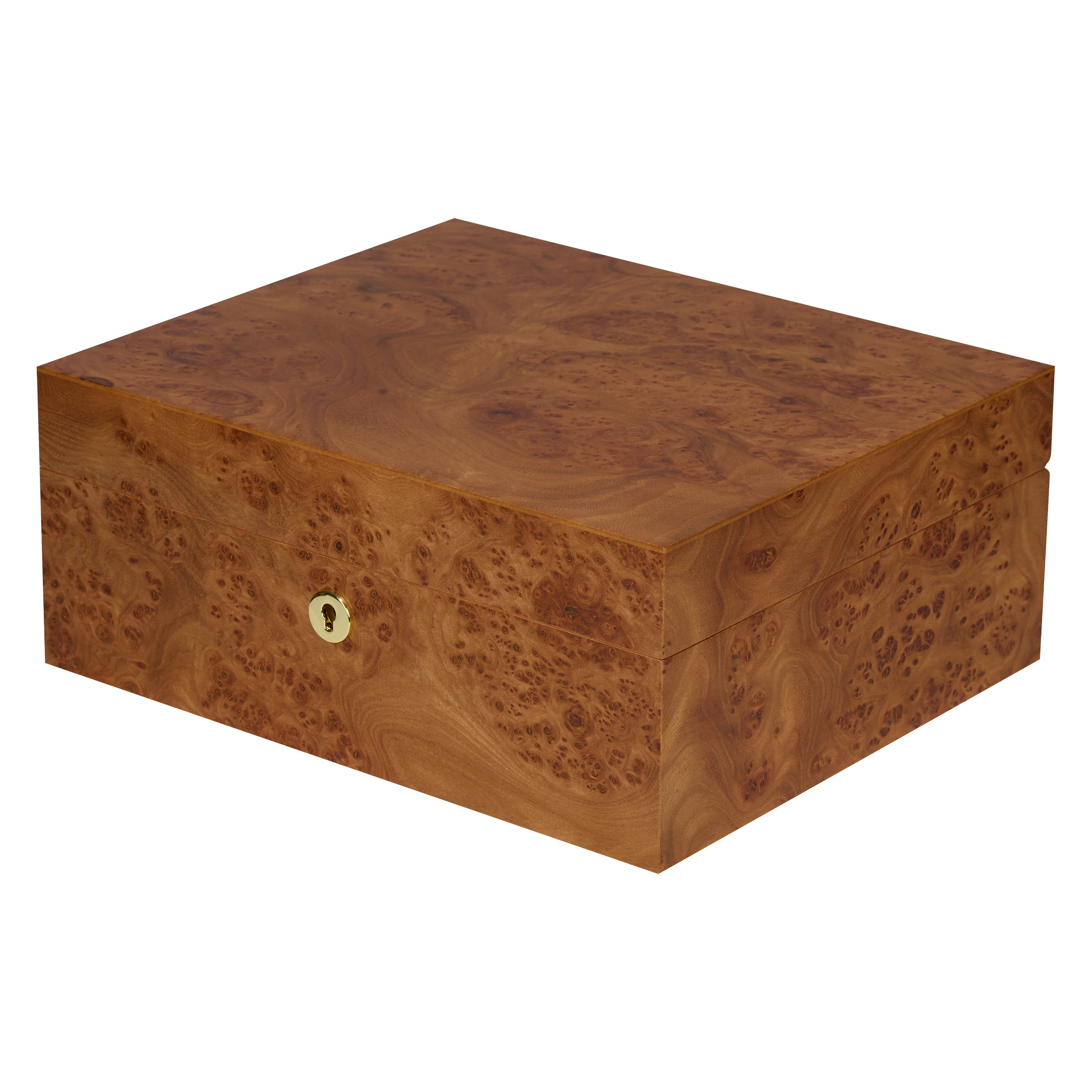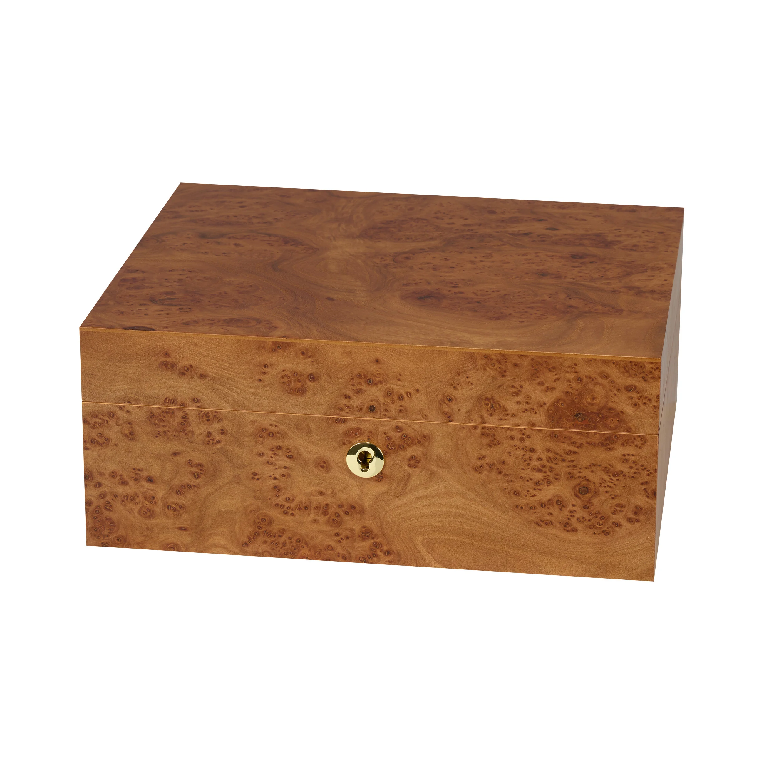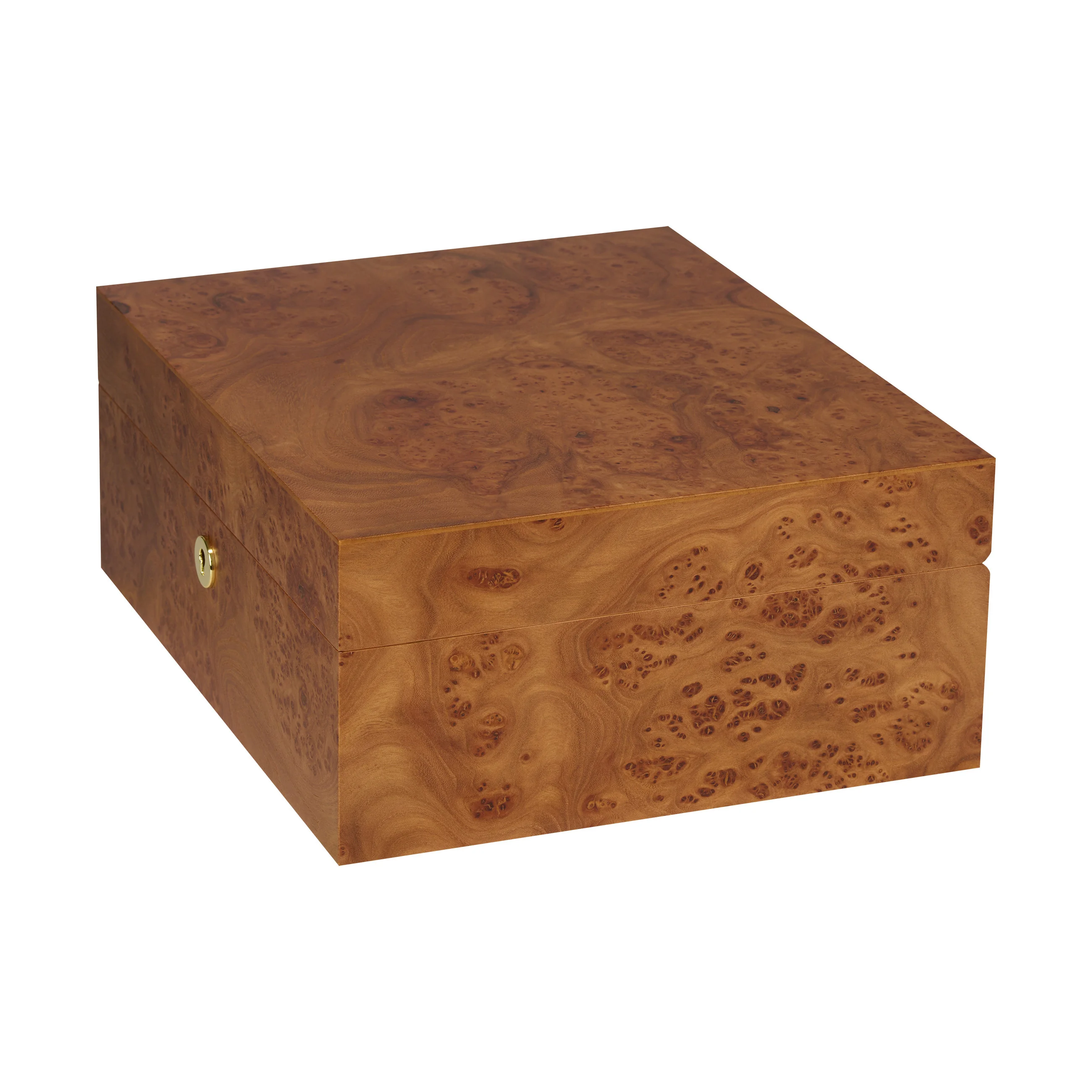 The elm wood impresses with its characteristic grain with warm to dark brown tones, interspersed with striking burrs, also known as "eyes." Thanks to its warm and natural appearance, the humidor blends harmoniously into almost any setting. Medium-sized humidors hold up to 75 cigars, providing ample space for your cigar collection.