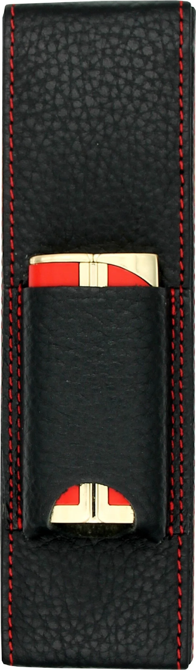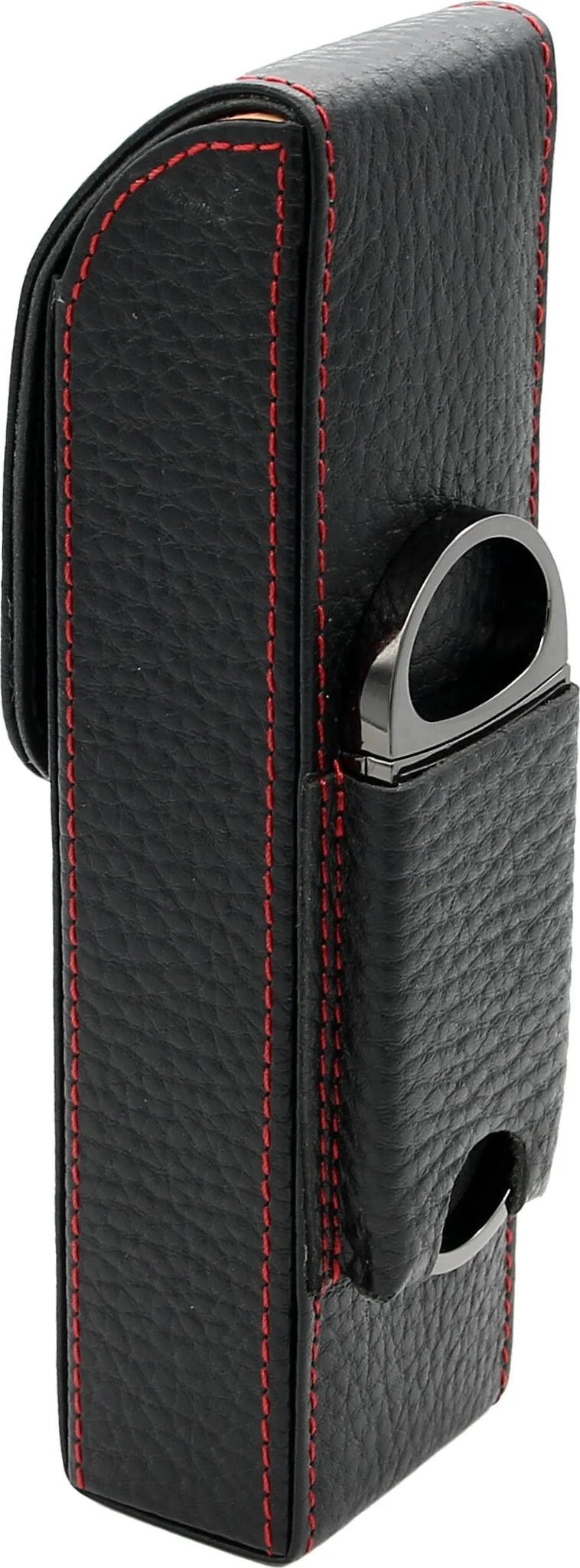 Adorini δερμάτινη θήκη τσέπης για πούρα 2 πούρα με μαύρες και κόκκινες ραφές και με θήκη για πουροκόφτη ή αναπτήρα