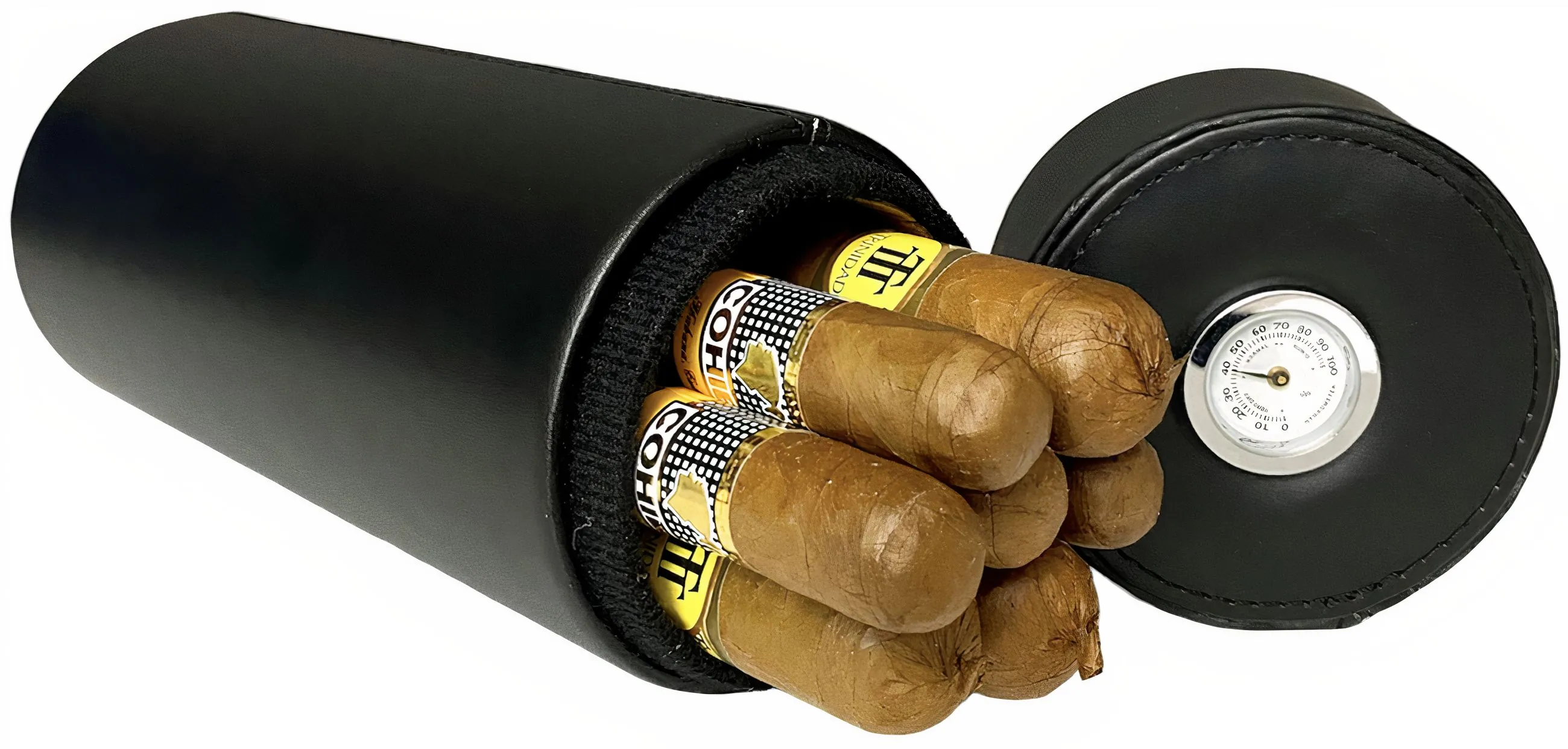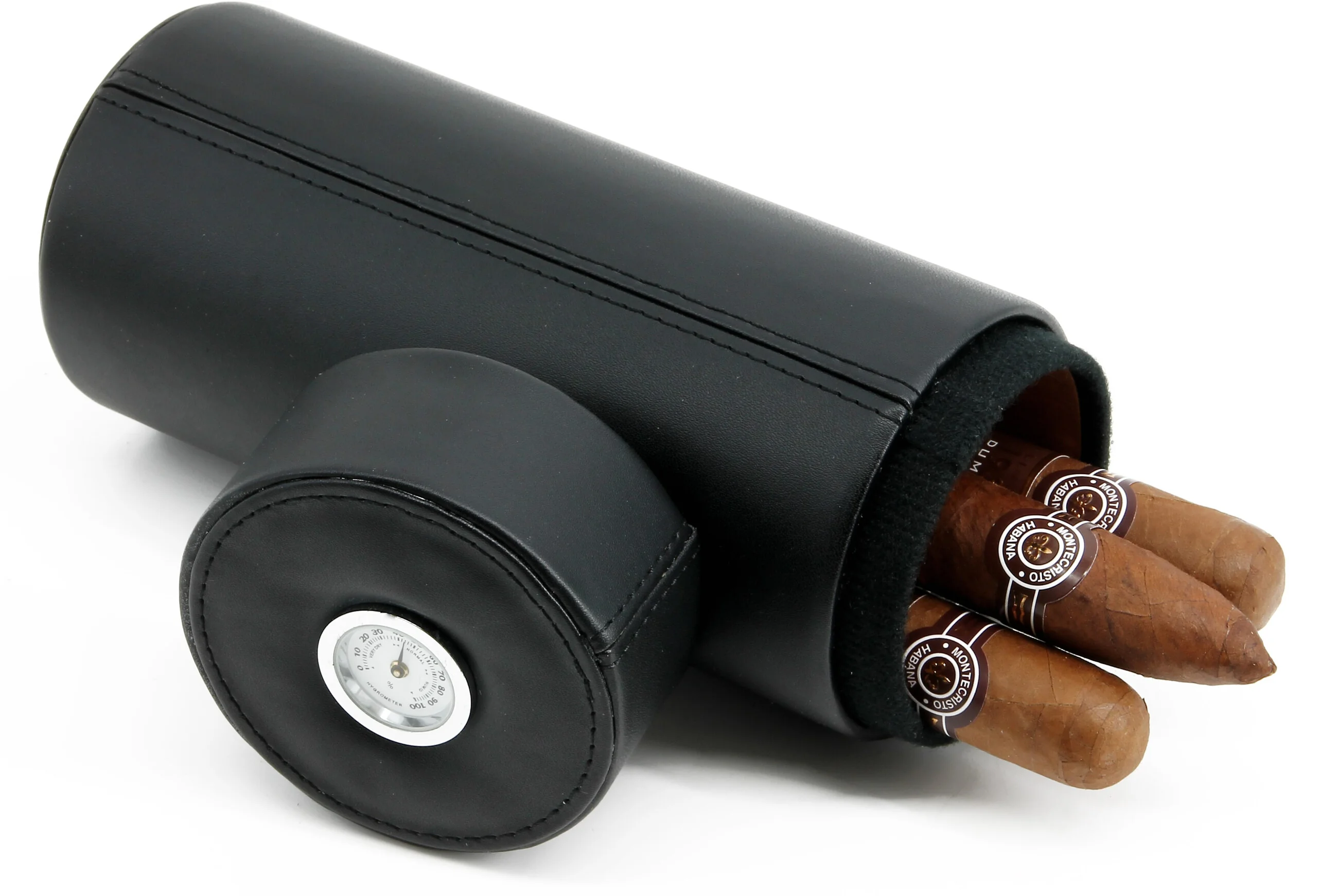 - Πρακτική κυλινδρική μαύρη δερμάτινη θήκη ταξιδιού για πούρα