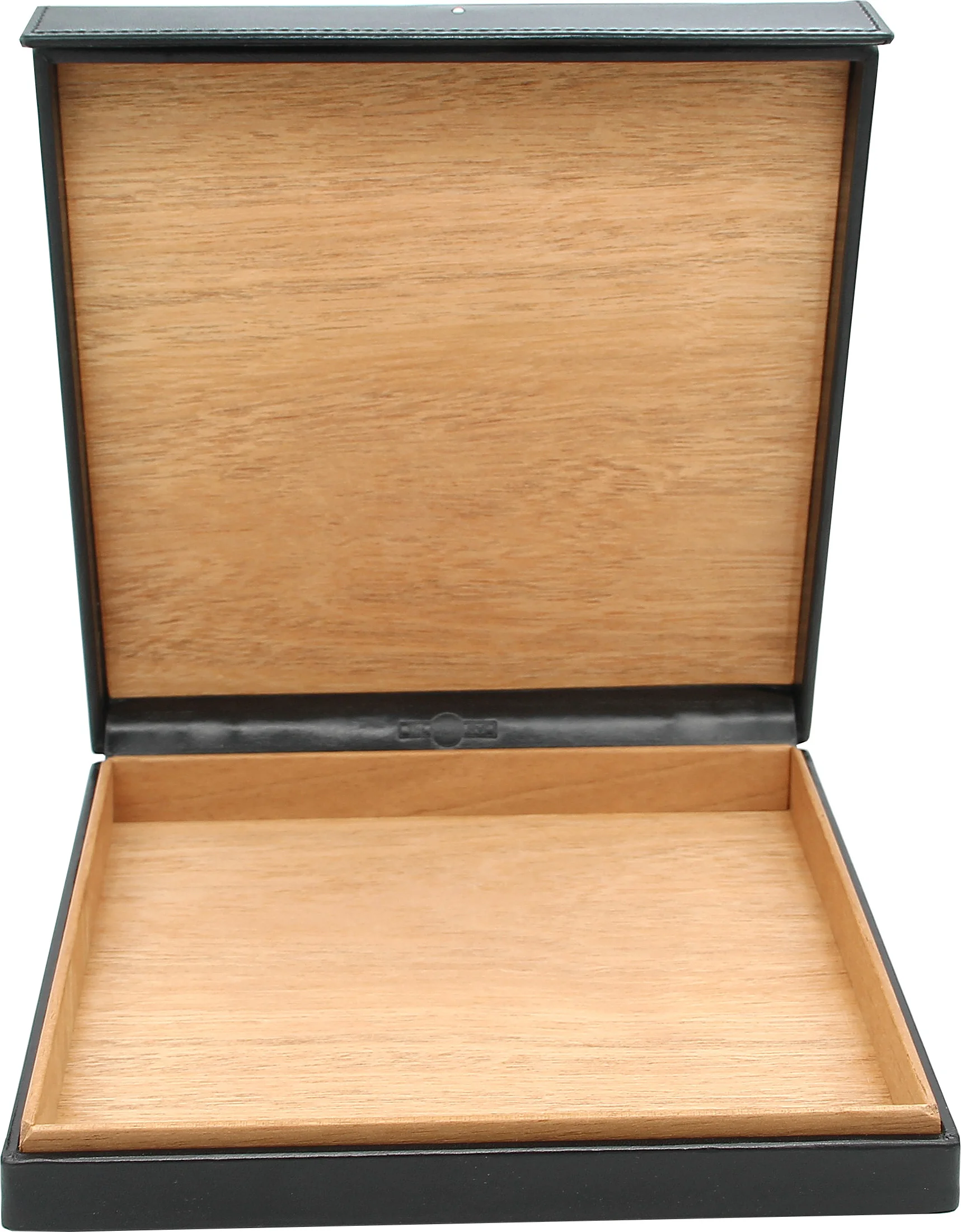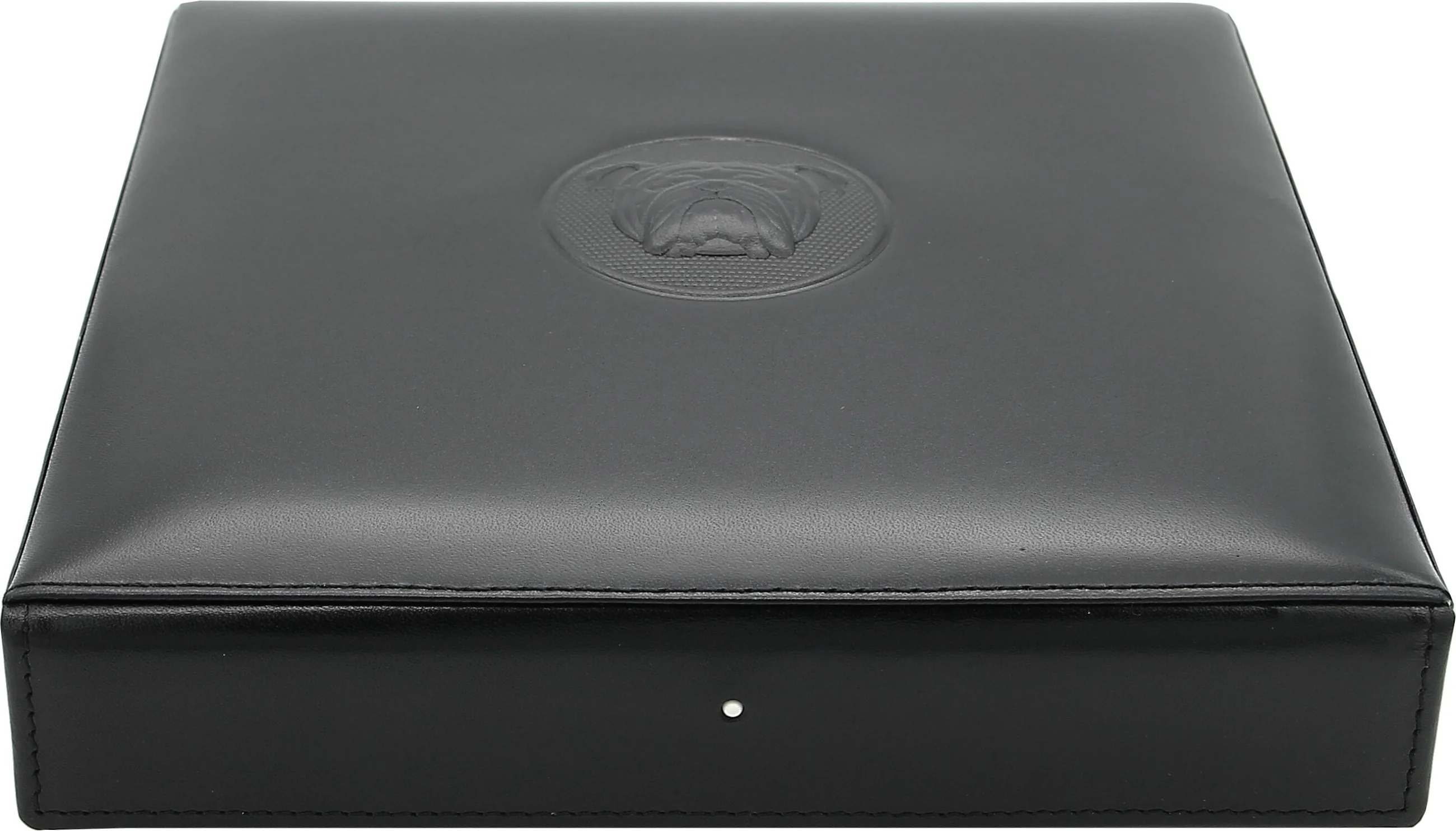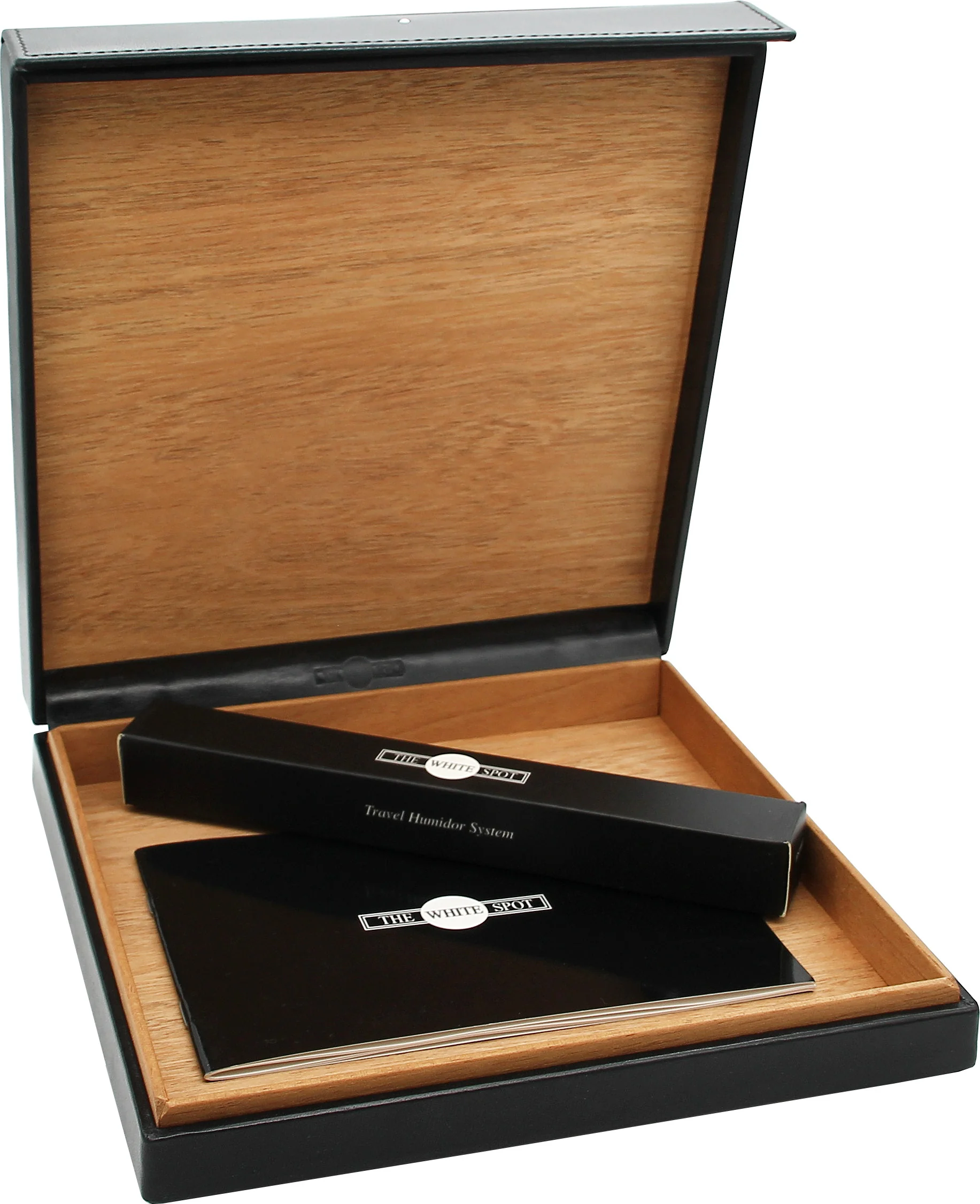 The elegant travel humidor in black from the renowned English heritage brand Dunhill is the perfect companion for on the go. Covered in the finest leather from Spain and lined with high-quality wood, it offers space and protection for approximately 10 cigars. The closure is a magnetic clasp hidden beneath the leather. The embossed bulldog logo on the leather is an unmistakable Dunhill trademark, as is the famous White Spot on the front of the humidor. A sophisticated travel humidor that stylishly protects your cigars and proves to be a reliable companion on all your travels and trips.