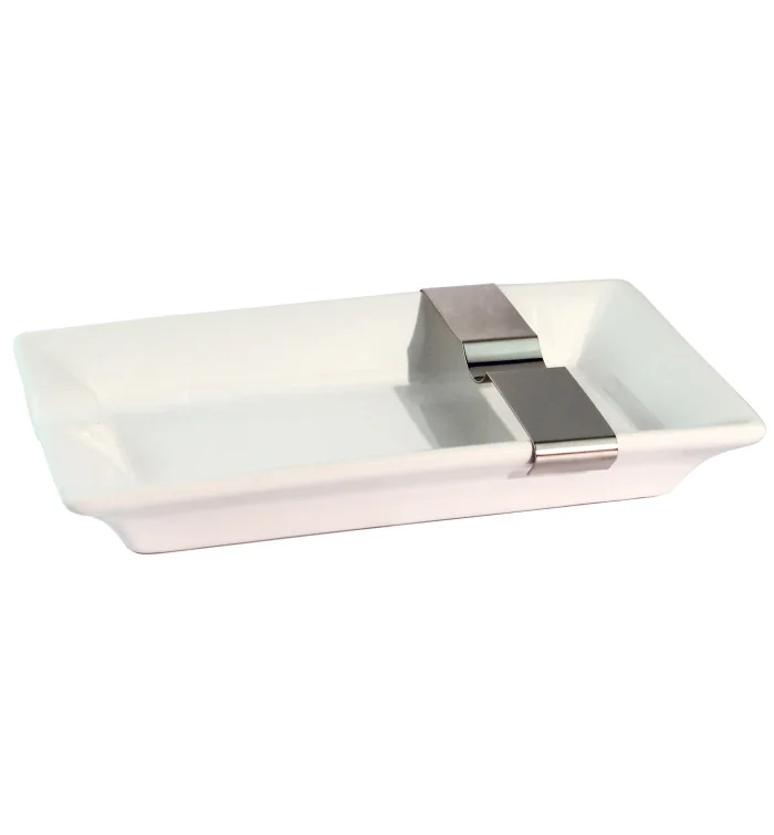 Λευκό κεραμικό σταχτοδοχείο για πούρα με ένα ράφι και ένα εύκαμπτο μεταλλικό ράφι