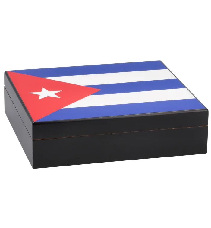Υγραντήρας πούρων Μαύρη επιφάνεια με Κουβανική Σημαία