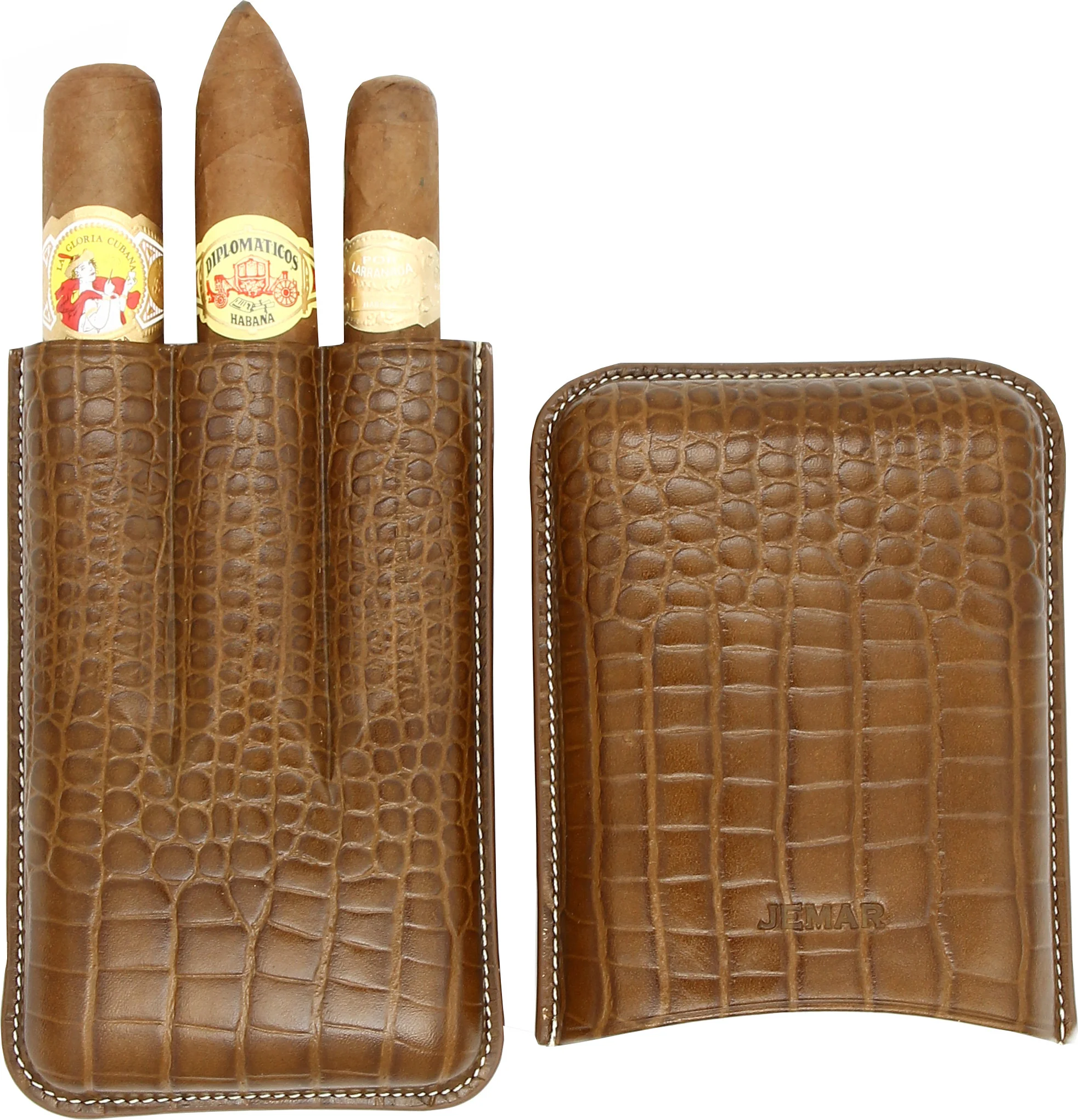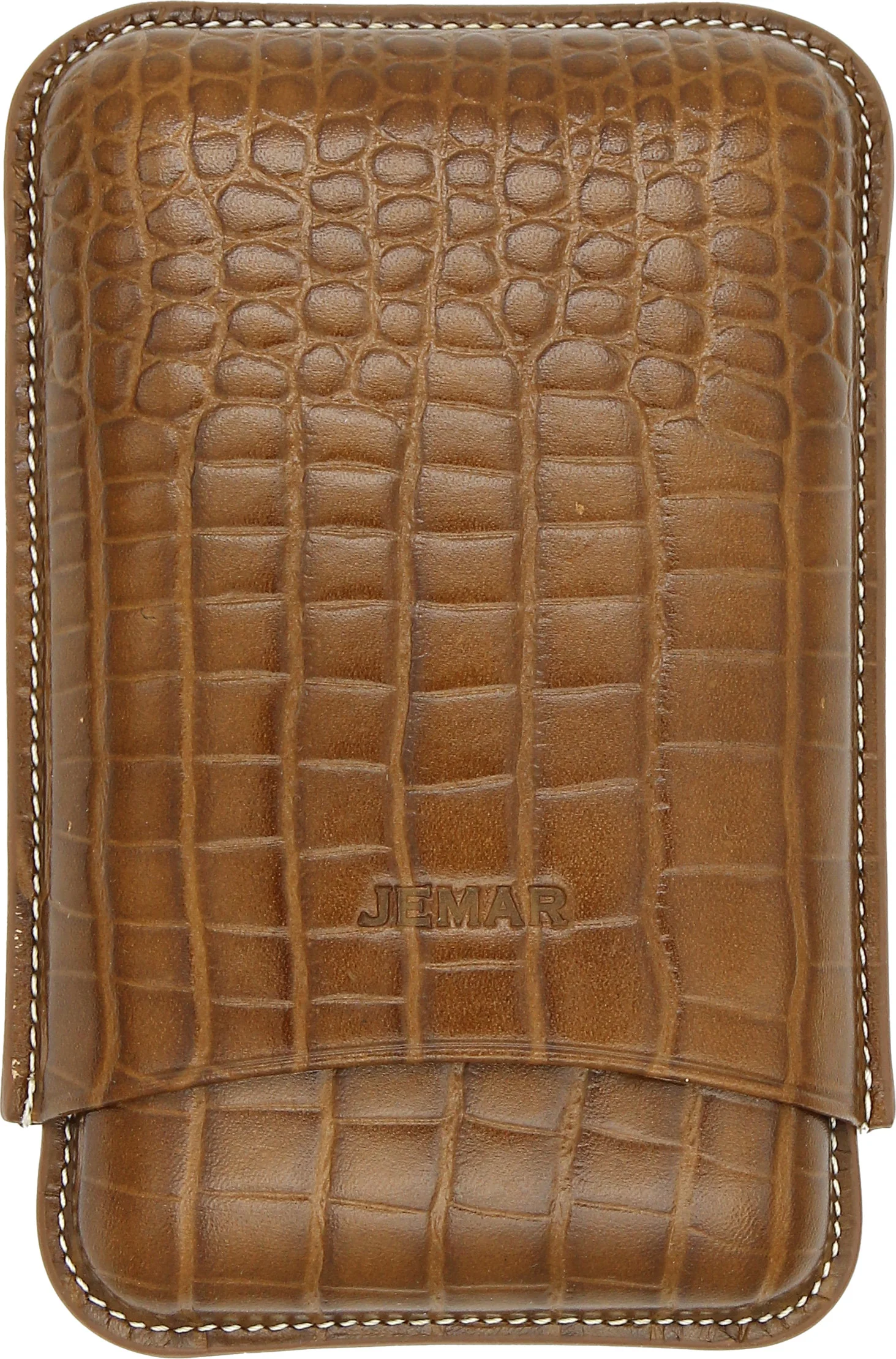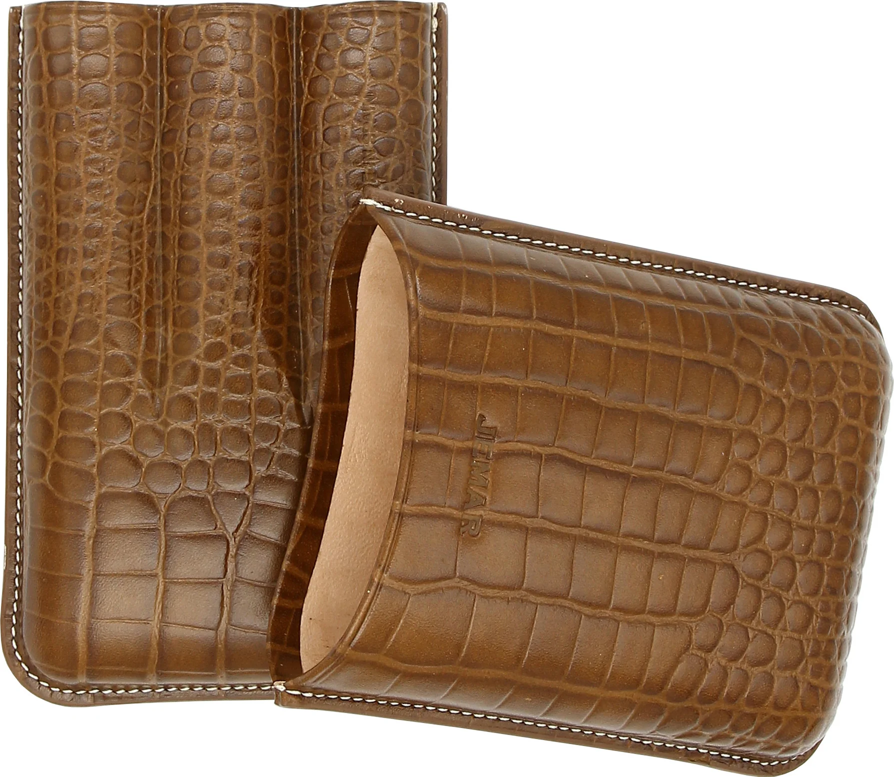 Jemar Δερμάτινη θήκη πούρων για τρία πούρα, δέρμα κροκόδειλου, καμηλό