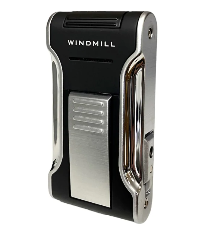 Αναπτήρας τύπου Jet της Windmill σε μαύρο ματ και γυαλιστερό ασημί φινίρισμα