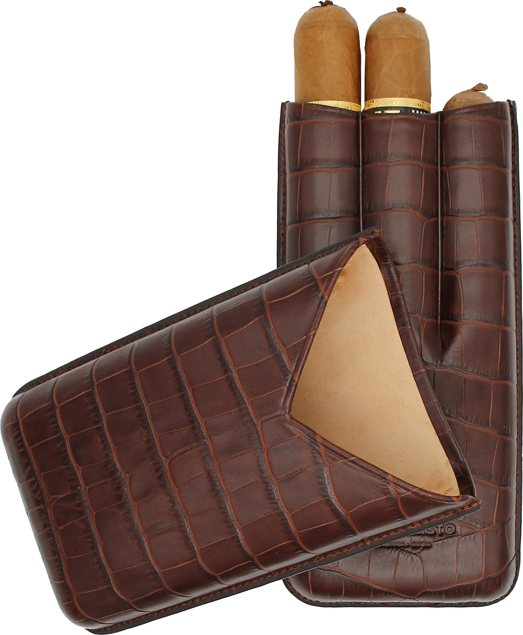 Montecristo Leather Cigar Case, Brown, for 3 Cigars