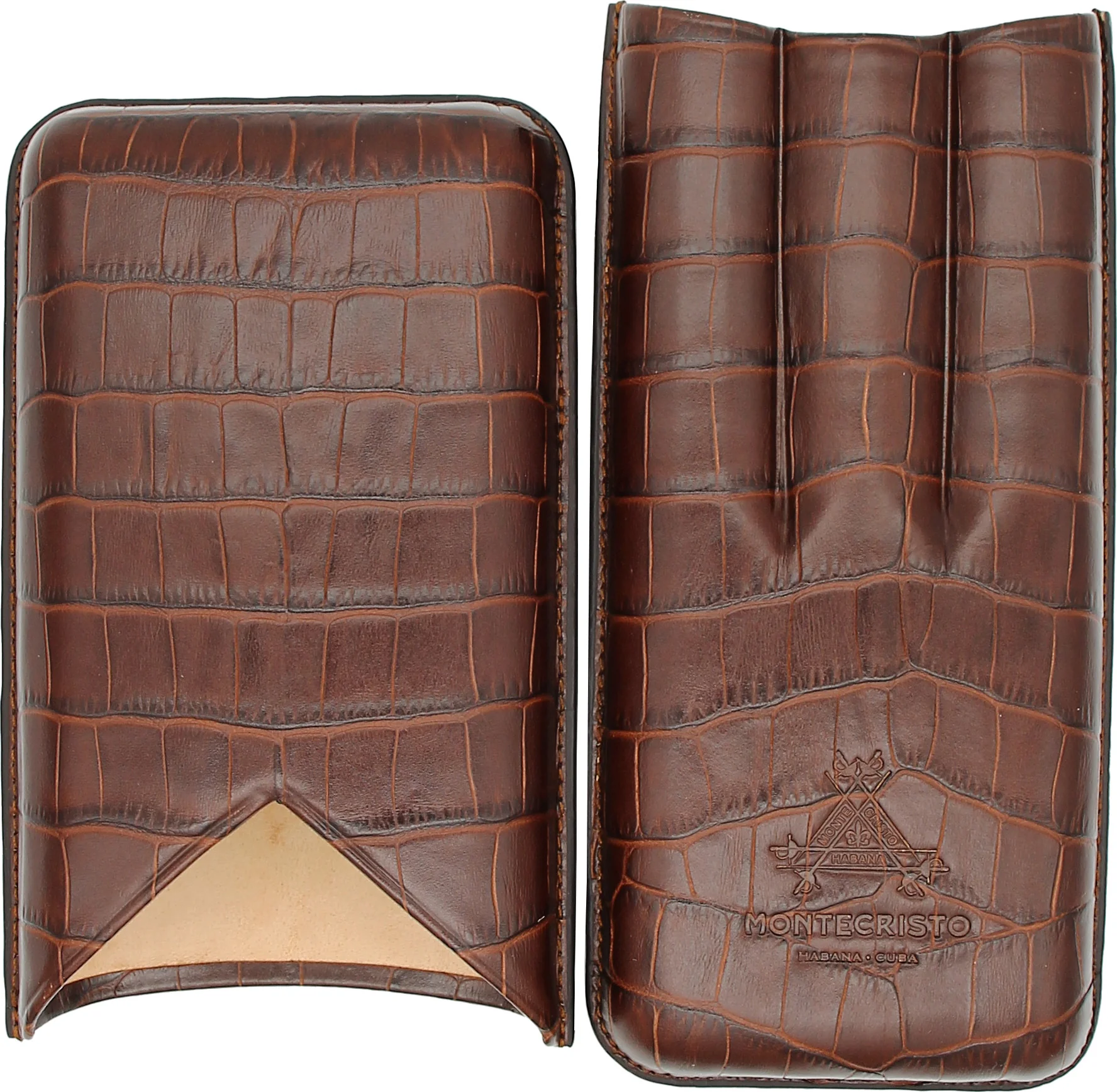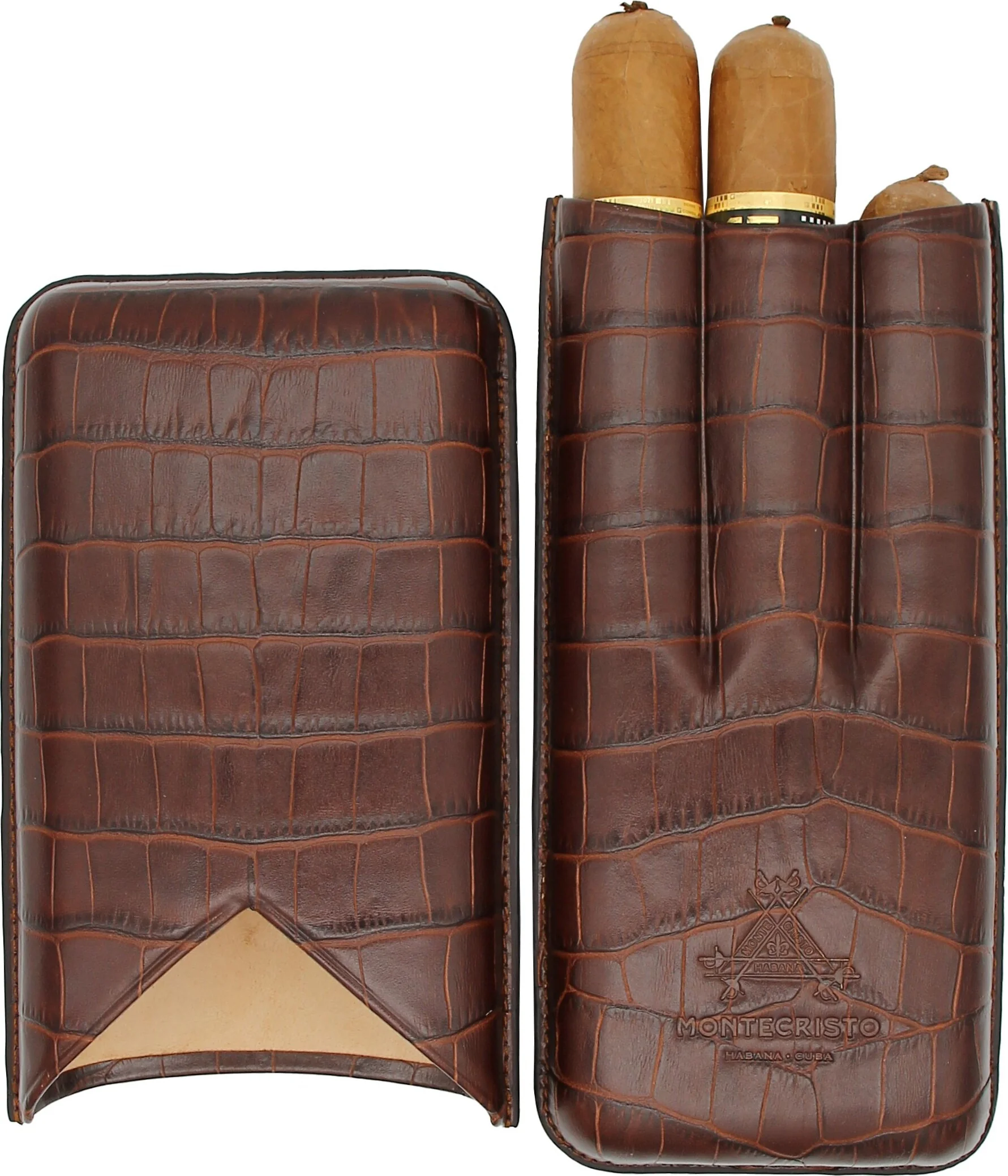 Montecristo δερμάτινη θήκη πούρων καφέ 3 τμχ