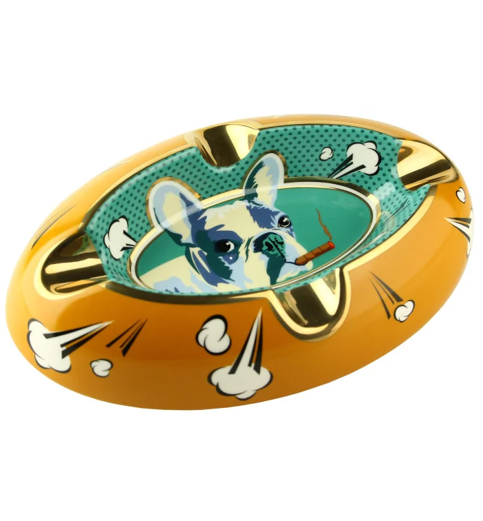 Το **σταχτοδοχείο Siglo Year of the Dog** είναι ένα εντυπωσιακό τασάκι πούρων στο εμβληματικό pop-art στυλ της Siglo. Με τολμηρά πορτοκαλί και πράσινα/τυρκουάζ χρώματα και το μοναδικό σχέδιο ενός γαλλικού μπουλντόγκ που καπνίζει, αυτό το τασάκι είναι κάθε άλλο παρά διακριτικό - είναι ένα πραγματικό αξεσουάρ statement! Ιδανικό για να απολαμβάνετε πούρα με παρέα, διαθέτει τέσσερις ευρύχωρες βάσεις για πούρα, παρέχοντας ασφαλή, υπερυψωμένη τοποθέτηση για κάθε πούρο.