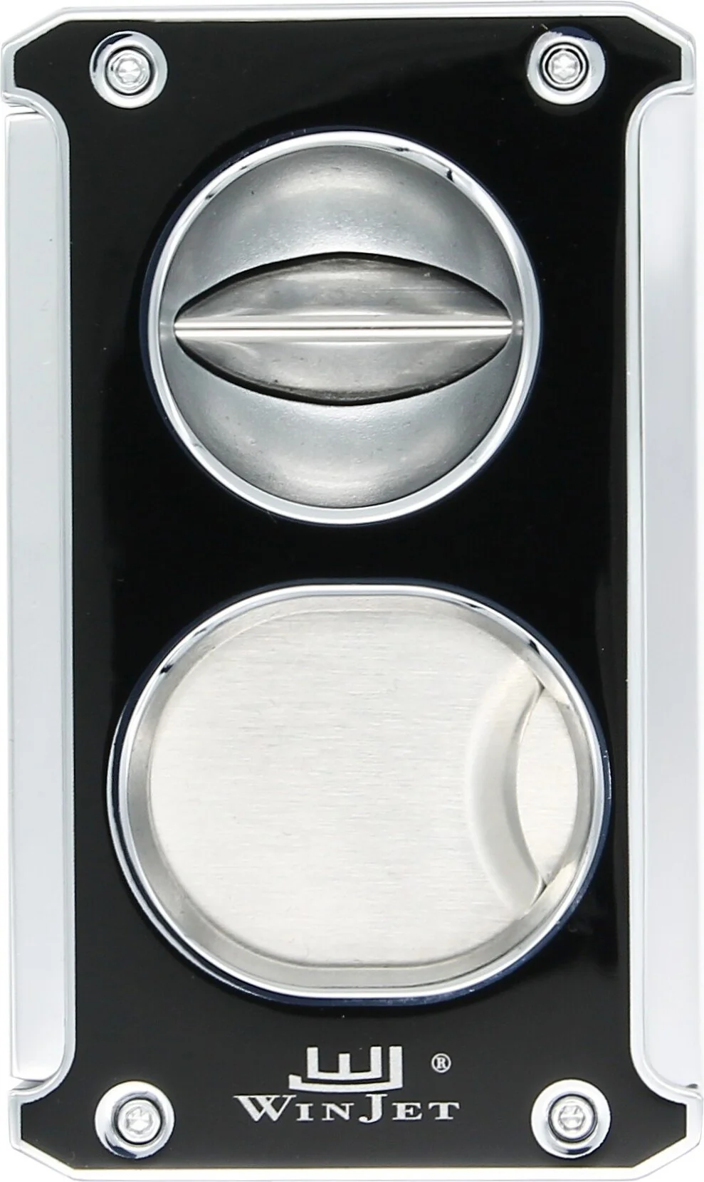 Βελτιώστε την εμπειρία τελετουργίας απολαύσης των πούρων σας με αυτόν τον κομψό πουροκόφτη Winjet 3-σε-1 σε γυαλιστερό μαύρο χρώμα με ασημί λεπτομέρειες. Αυτό το ευέλικτο αξεσουάρ για πούρα ανταποκρίνεται στις διαφορετικές προτιμήσεις των απανταχού φίλων του πούρου, καθώς συνδυάζει κλασική κοπή, κοπή V και διάτρηση πούρων σε ένα μόνο εργαλείο.