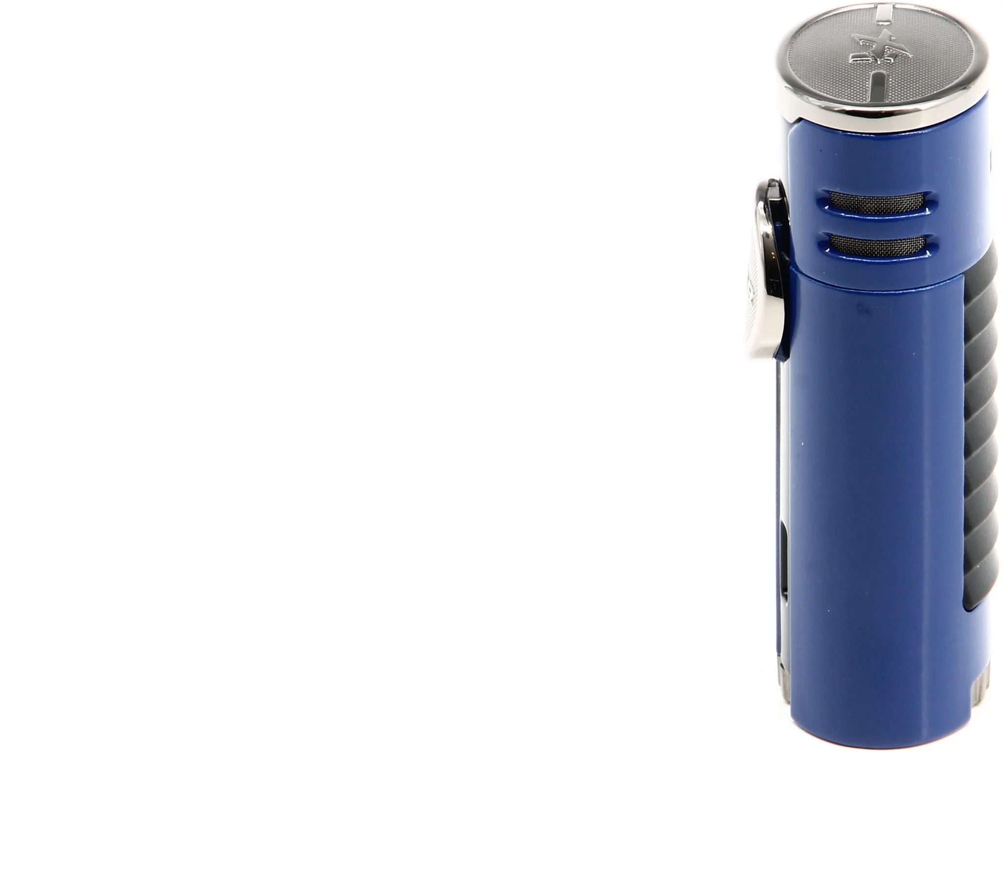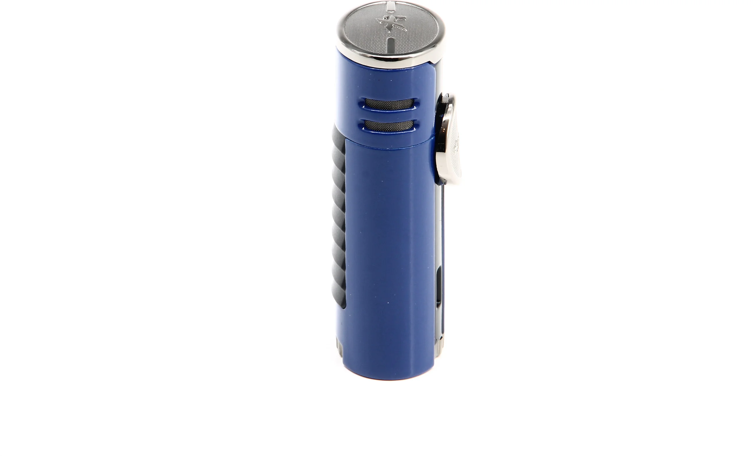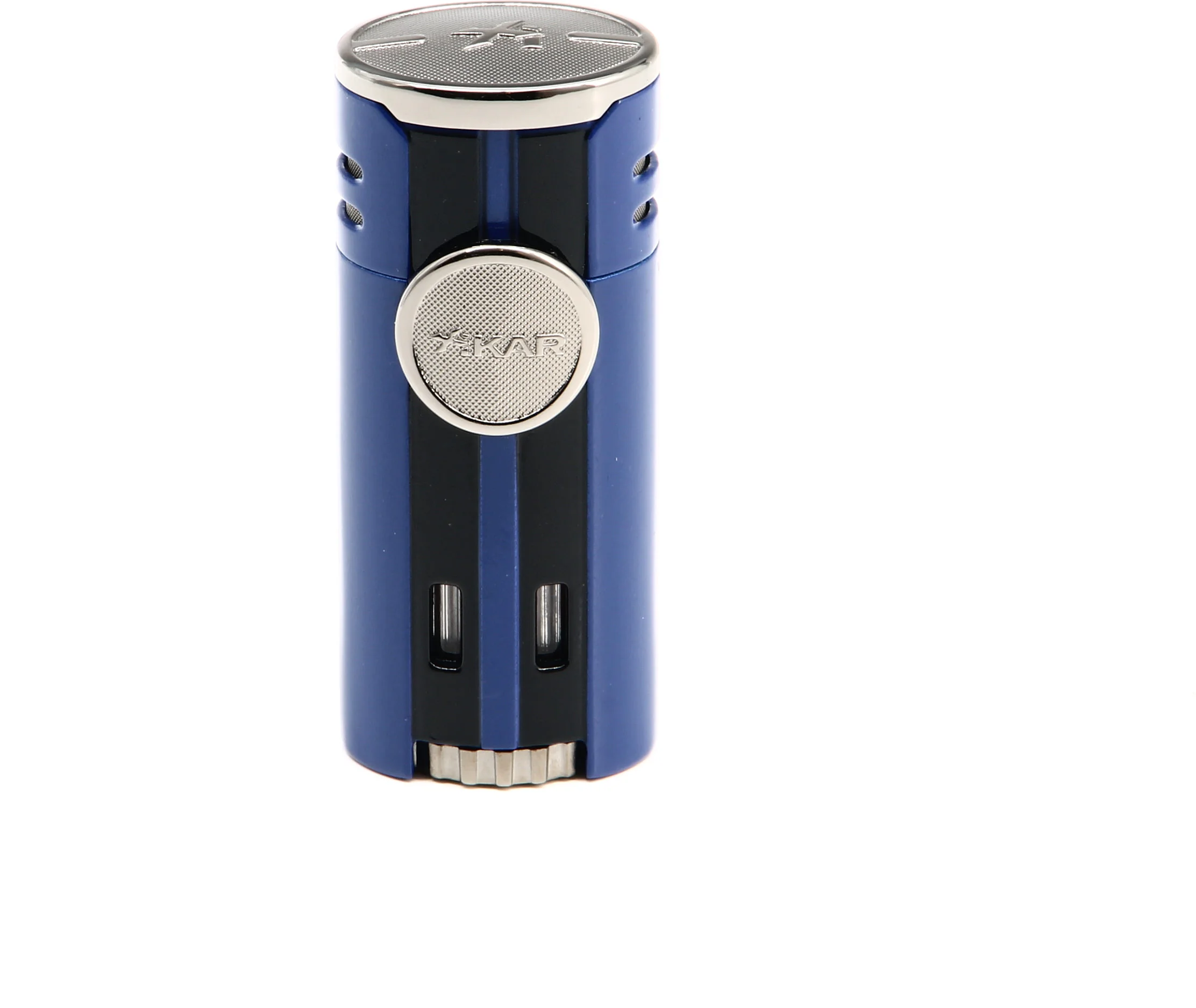 Ο Αναπτήρας Xikar HP4 Quad τραβάει αμέσως τα βλέμματα με το εντυπωσιακό μπλε φινίρισμα που τονίζεται από χρωμιωμένες πινελιές. Θυμίζοντας τα supercars που ενέπνευσαν το σχεδιασμό του αναπτήρα, ένα πίσω πάνελ με προεξοχές προσθέτει επιπλέον στυλ στην κομψή και μοντέρνα εμφάνιση.