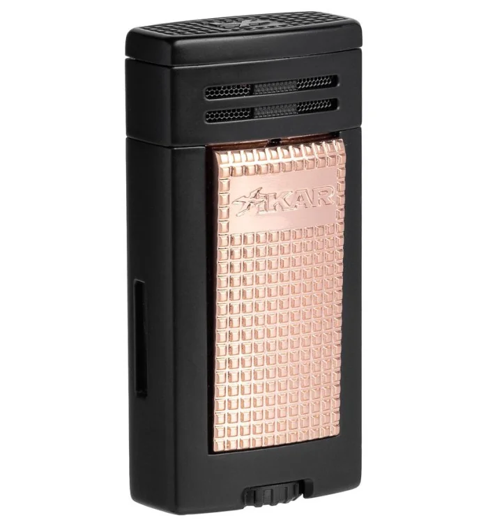 Ο **αναπτήρας Xikar Ion διπλής φλόγας σε μαύρο με ροζ χρυσό** είναι ένας υψηλής ποιότητας και αξιόπιστος αναπτήρας από τη διεθνώς γνωστή μάρκα αξεσουάρ για πούρα Xikar. Ξεχωρίζει με τη μοντέρνα, σπορ εμφάνισή του, που θυμίζει σχέδια από την αυτοκινητοβιομηχανία. Το ματ μαύρο σώμα και το μπροστινό κουμπί σε κομψό ροζ χρυσό για την ανάφλεξη της φλόγας προσδίδουν στον αναπτήρα μια κομψή εμφάνιση.